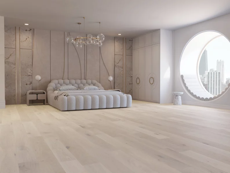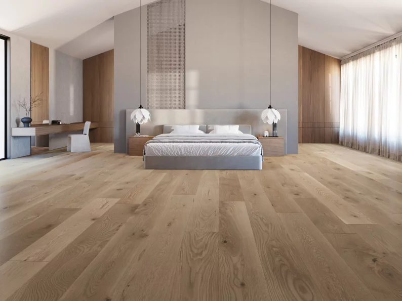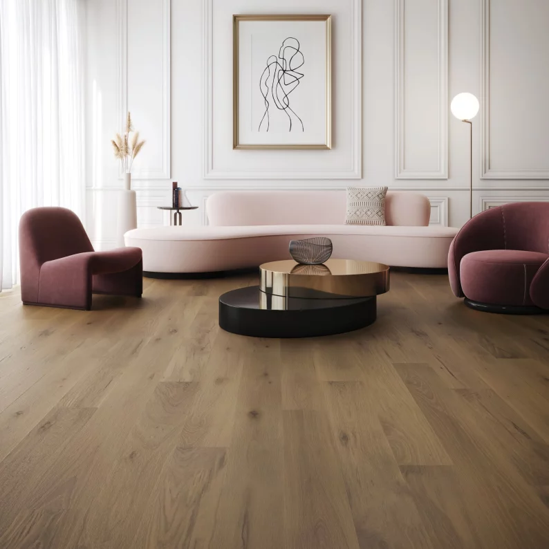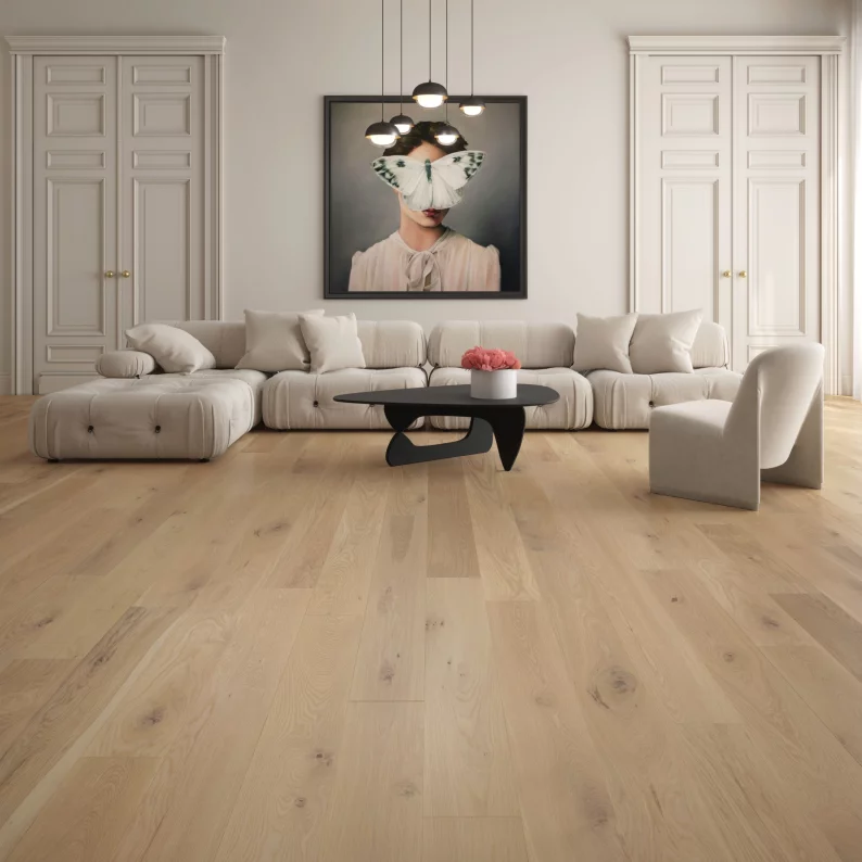Si vous cherchez plutôt une allure audacieuse, osez le plancher en motif Herringbone ou Chevron en largeur de 5 po et en longueurs fixes. Vous craignez que ce motif ne se démode ? Détrompez-vous ! Si les tendances changent au fil des saisons, ce design intemporel conserve une fraîcheur remarquable.