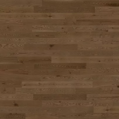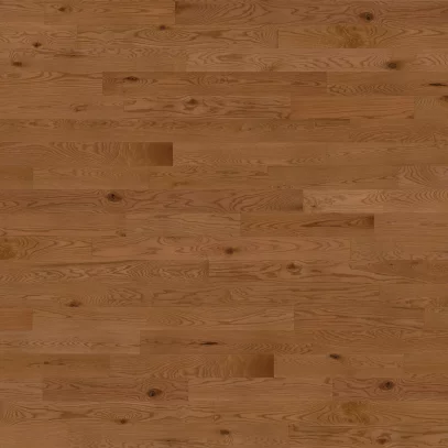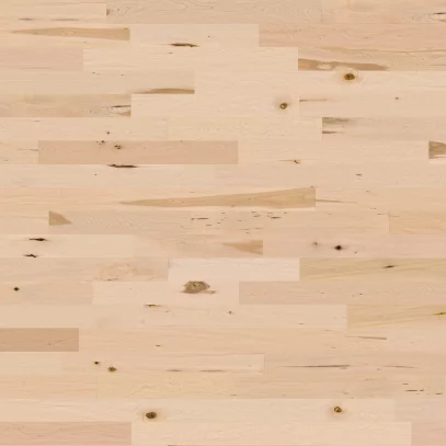 Découvrez la construction de planches d’ingénierie à 3 couches : une couche d’usure de 3 mm de bois franc, un centre de lamelles de bois provenant de sources locales et un placage de bois, le tout protégé par un fini mat résistant à l’usure qui rehausse la beauté naturelle du bois.