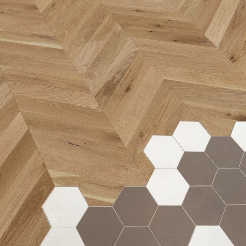 Les planches Herringbone offrent de nombreuses possibilités pour sublimer votre intérieur. Redéfinissez vos espaces avec élégance en combinant des planches Linéaire et Herringbone, en intégrant des insertions ciblées ou en associant différentes couleurs pour un impact visuel audacieux, créant ainsi un plancher en bois incomparable.