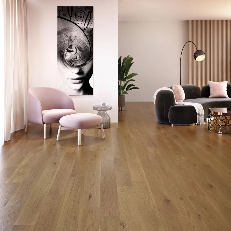 La couche supérieure en lame de bois franc est protégée par un fini résistant : le DuraMatt®, le DurAlive™ ou le Cashmere®, selon la collection, qui allie durabilité exceptionnelle et beauté intemporelle du bois. Ces finis mats exclusifs sont enrichies d’agents antimicrobiens, favorisant un environnement plus sain et prolongeant la durée de vie de vos planchers. Vous bénéficierez ainsi de planchers qui conservent leur éclat au fil des années, avec une garantie avantageuse de 35 ans contre l’usure pour les applications résidentielles et de 3 ans pour un usage commercial léger. Découvrez tout sur nos finis.