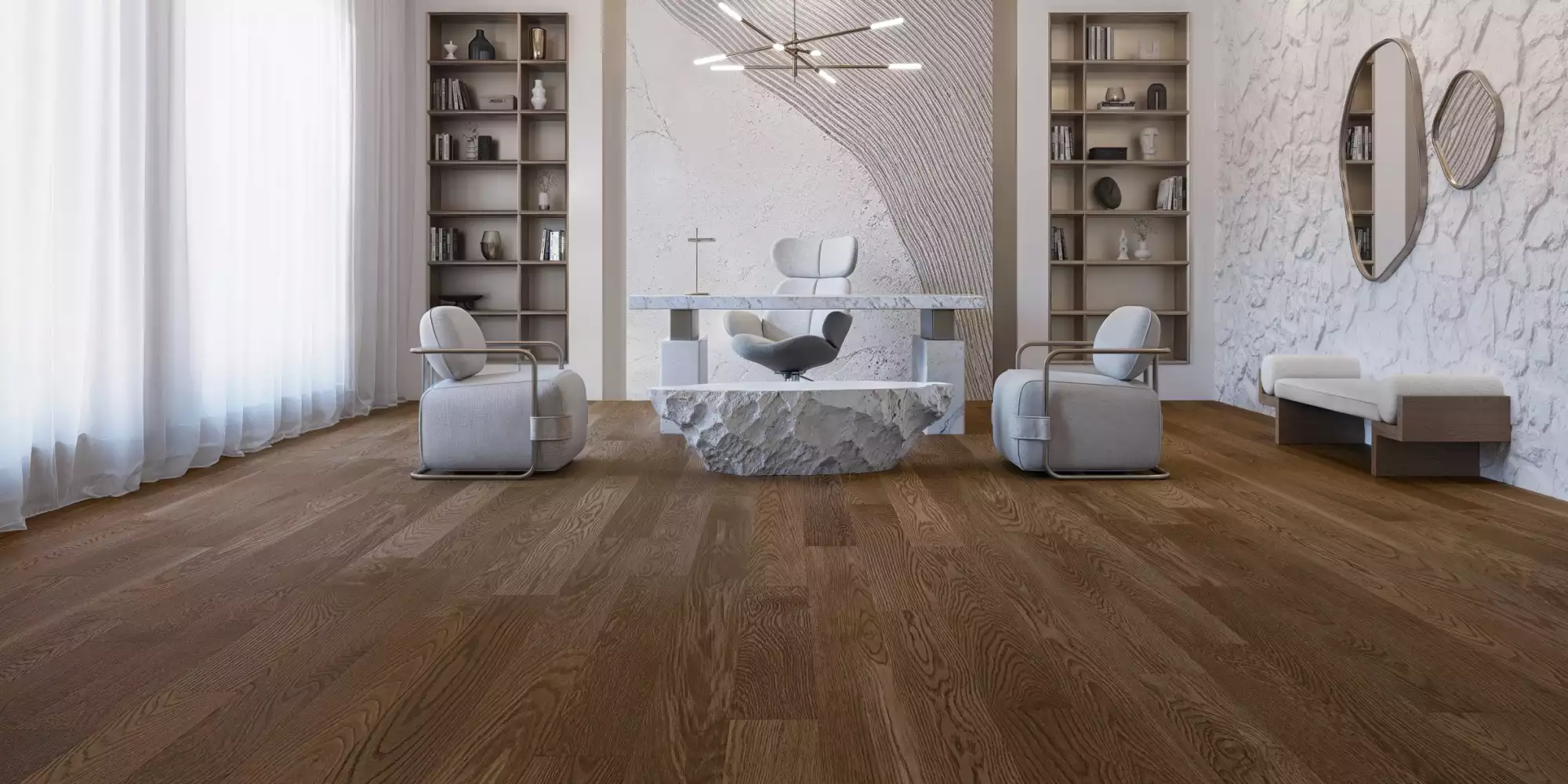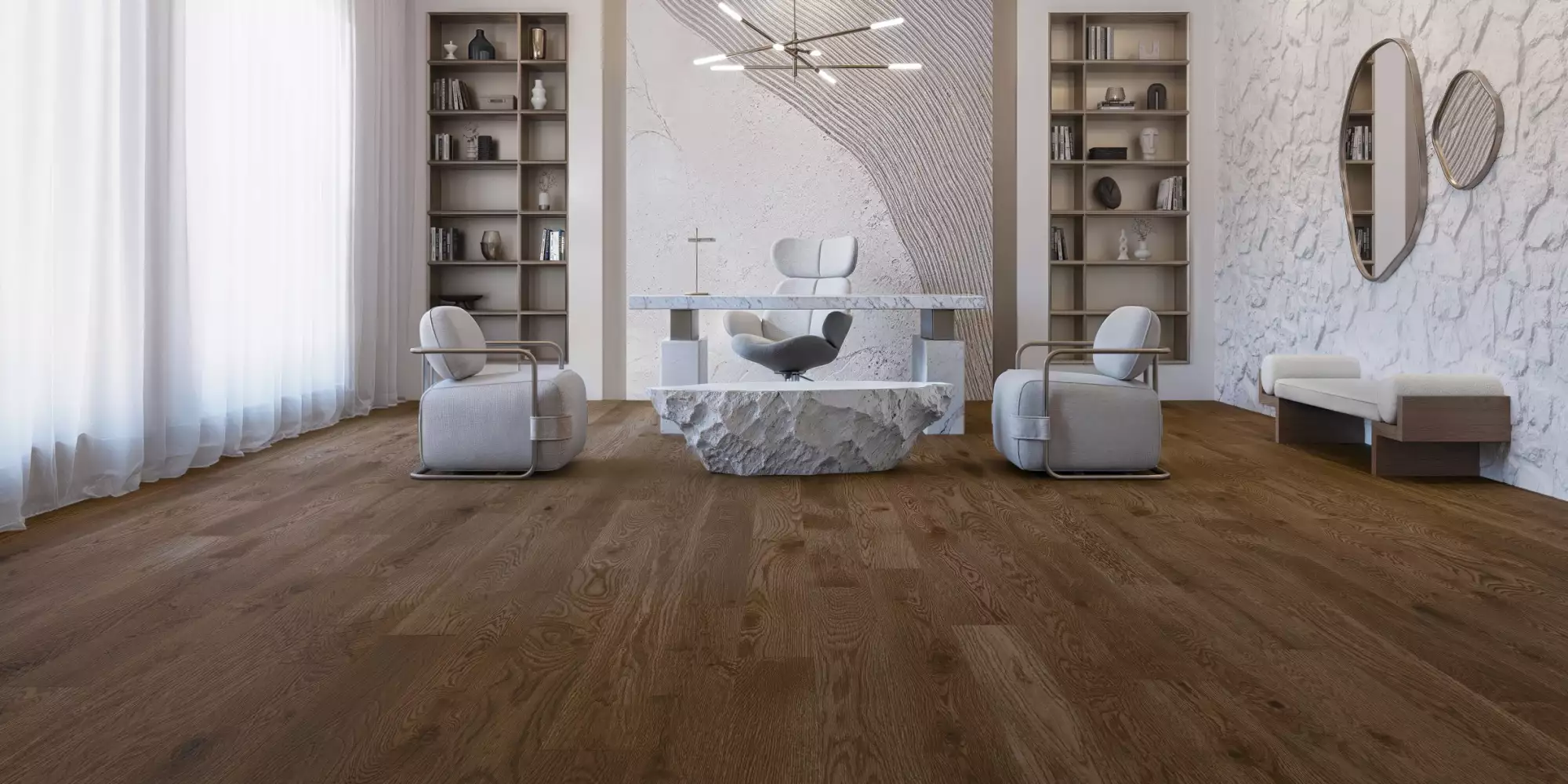 Succombez au charme mystérieux du Chêne blanc Sailing Stone Brossé, un brun pâle rehaussé de nuances de beige citronnées, évoquant la terre cuite sous le soleil. Idéal pour les styles vintage, du Mid-Century Modern au Hollywood Regency, il infuse l’espace d’une nostalgie envoûtante. Ses tons chauds et sa texture raffinée font de Sailing Stone l’élément apaisant par excellence, enveloppant chaque pièce d’une élégance complexe et intemporelle.