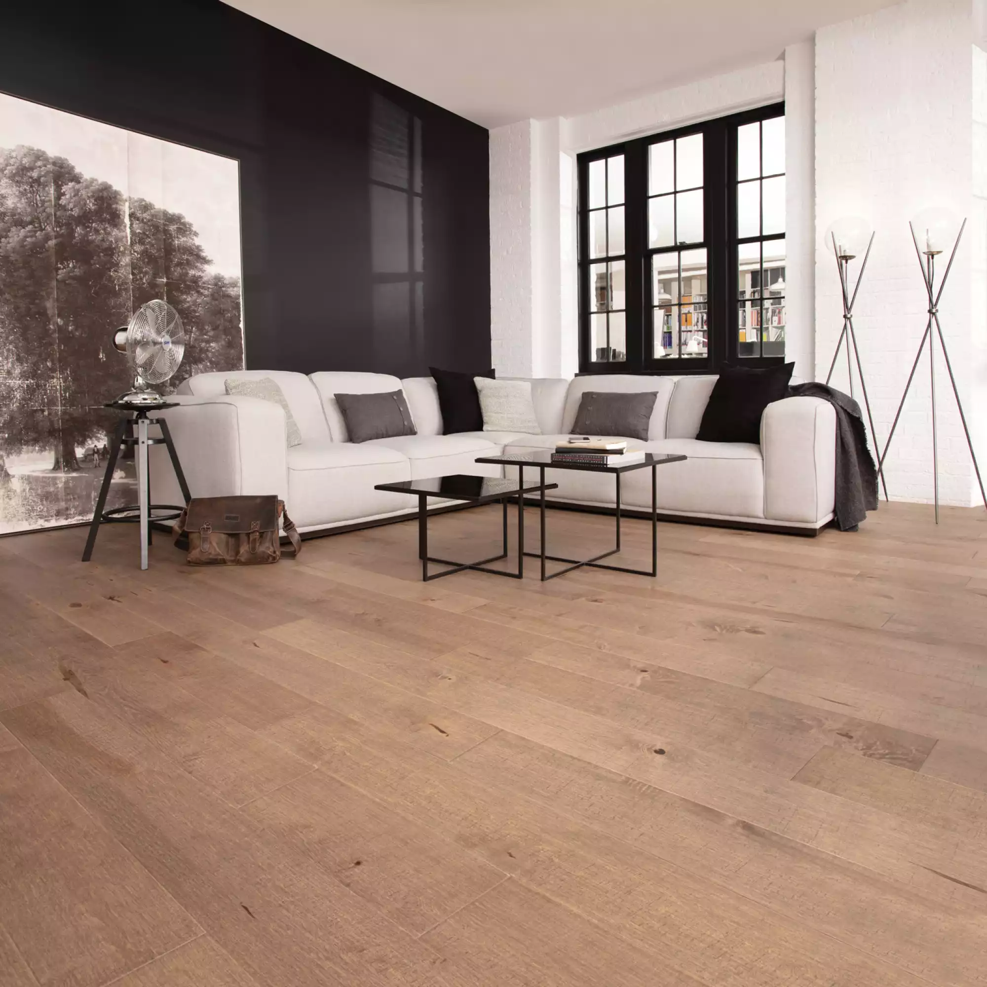 Grade de bois qui possède un éventail complet des caractéristiques naturelles du bois dont des variations de couleur prononcées, des nœuds ouverts et fermés, des traces de minéraux, des trous de surface, et autres marques de caractère ou d'usinage. Le plancher de grade Caractère est tel que la nature nous l'offre.
