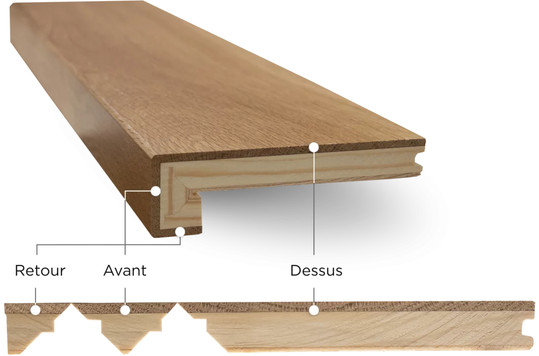 Ces nez de marche carrés en bois franc véritable s’intègrent parfaitement aux différentes technologies de revêtement de plancher, que ce soit au sommet et à la base des marches ainsi que sur les paliers.