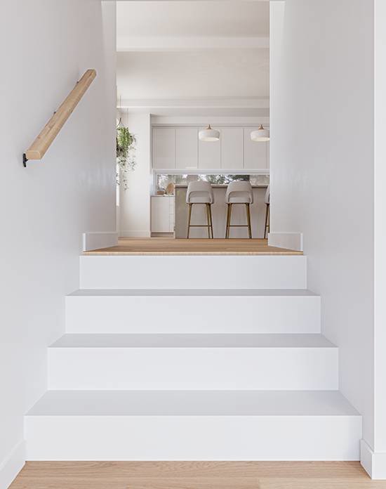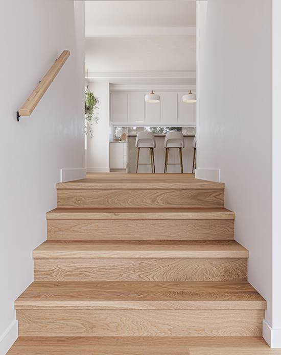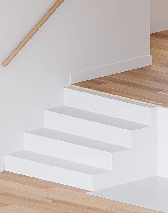 Planchers Mirage offre une nouvelle gamme exclusive de produits assortis : nez de marche carrés et planches pour marche et contremarche, fabriqués avec soin dans nos propres installations. Conçus pour s’intégrer parfaitement avec nos planchers de bois franc, ils facilitent l’installation des escaliers fermés et assurent une esthétique impeccable qui rehaussera le décor de votre maison pour de nombreuses années à venir.