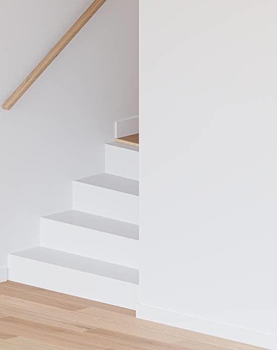 Élevez chaque marche avec des composants en bois franc assortis pour les escaliers fermés. Disponibles dans les mêmes options de couleur, texture et fini que vos planchers de bois Mirage, ils compléteront votre décor à la perfection.