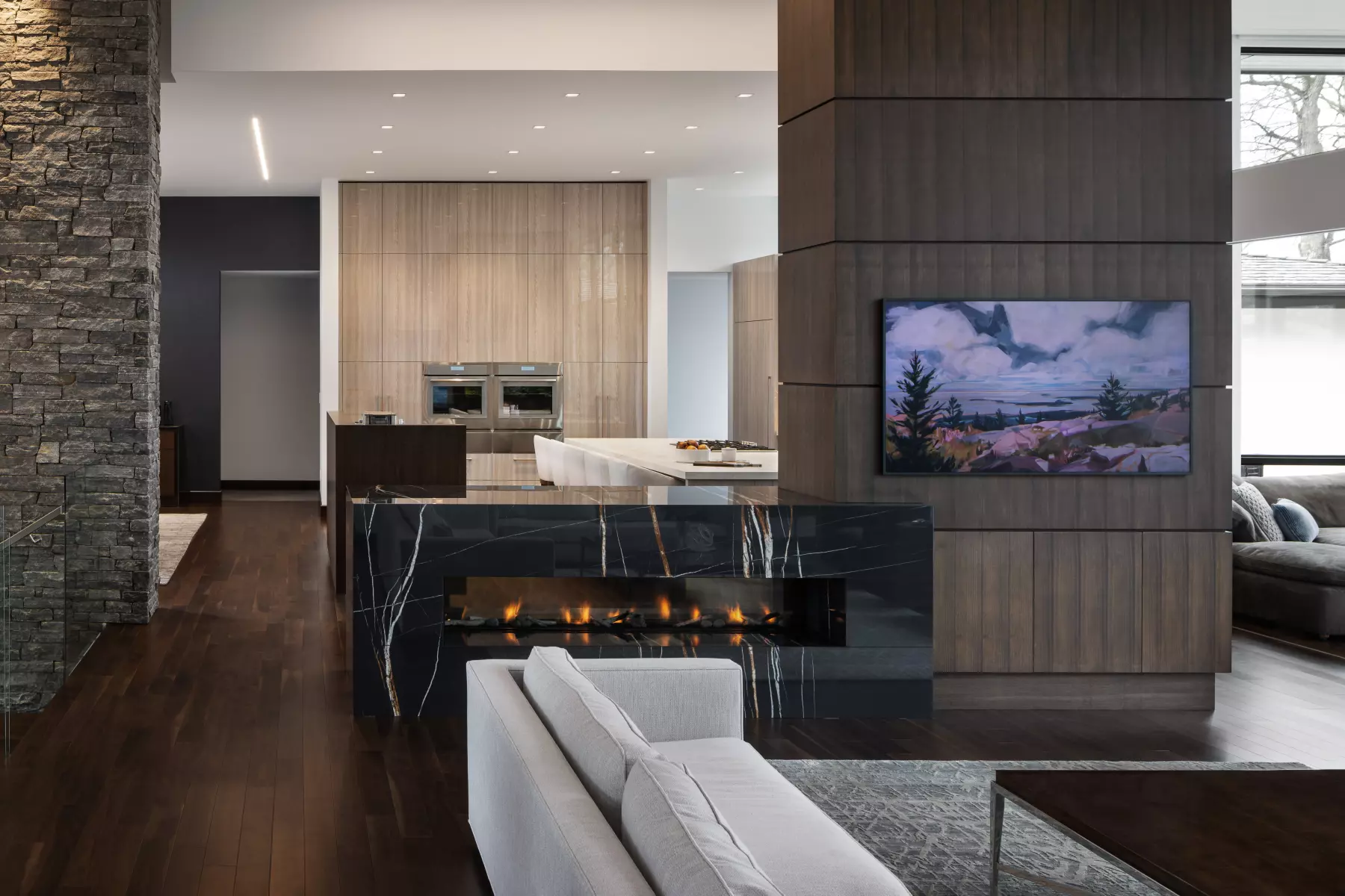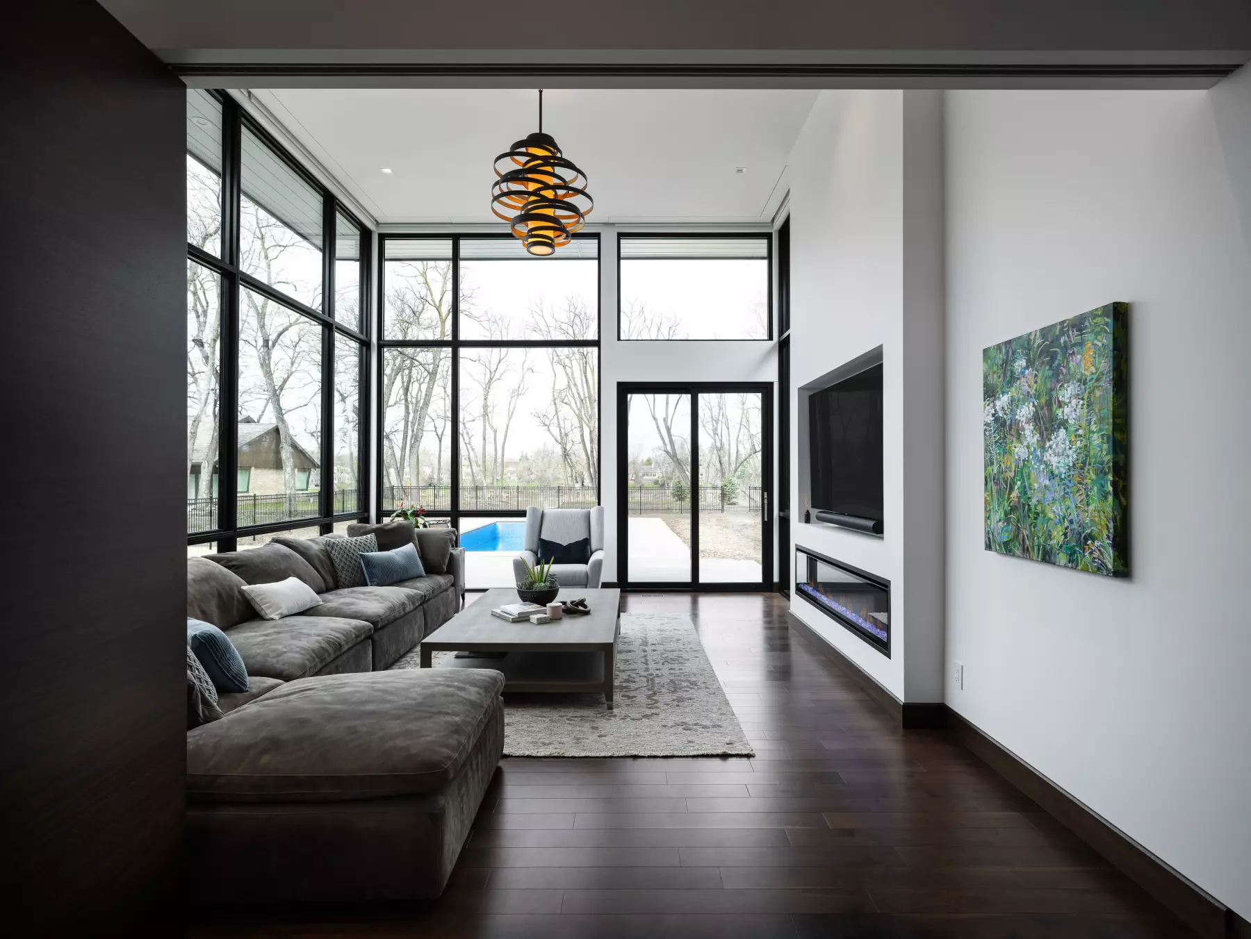 Conçue pour recevoir et impressionner, cette résidence riveraine de Winnipeg, Manitoba met en vedette le plancher de bois franc fait sur mesure Noyer Savanna Exclusive Lisse comme base raffinée pour toute la maison. Ses teintes riches et sa texture soyeuse unifient les espaces ouverts, mariant sophistication moderne et confort familial.