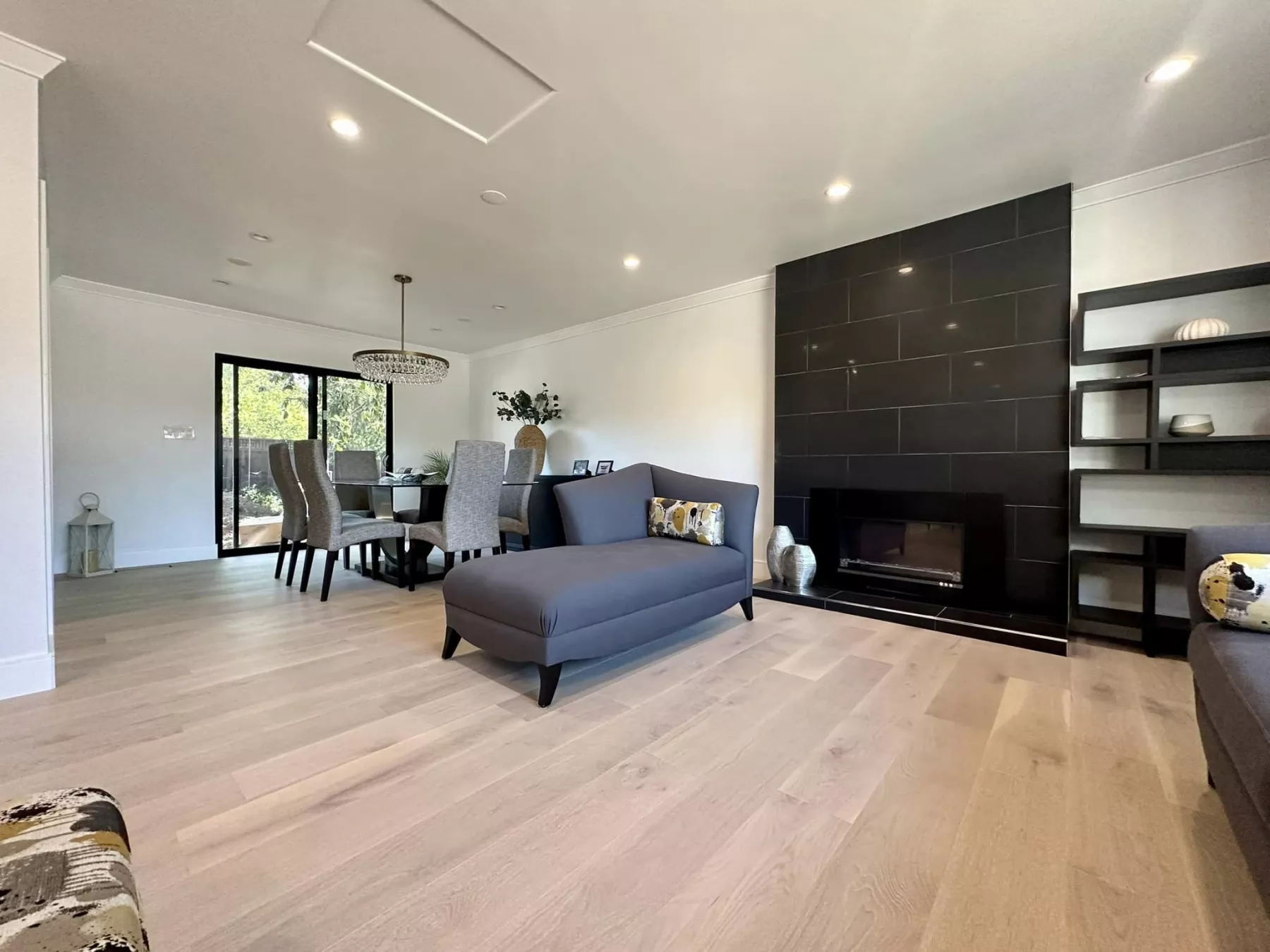 Dès l’entrée de cette maison moderne à Las Gatos, en Californie, la lumière naturelle est magnifiée par ce plancher de bois franc en Chêne blanc Bubble Bath Caractère Brossé, installé en planches de 7 3/4 pouces sur le niveau principal et dans l’escalier. Sa teinte blanc cassé, délicatement réchauffée par des accents terreux, crée une toile de fond élégante qui laisse respirer l’architecture, le mobilier et les jeux de lumière. La texture brossée et le caractère naturel du bois ajoutent juste ce qu’il faut de relief pour éviter toute monotonie.