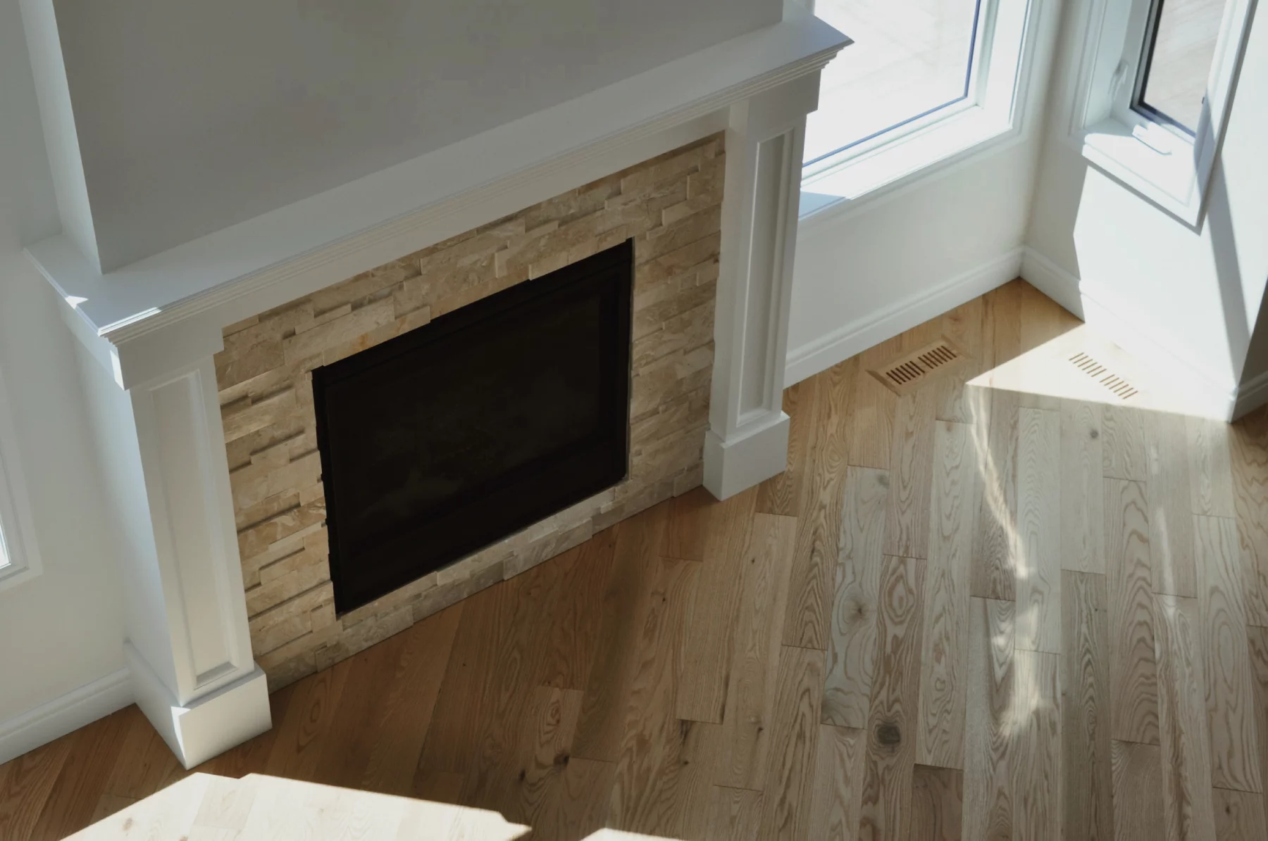 Réalisé avec expertise par Alberta Hardwood Flooring, ce projet prouve qu’un simple changement d’angle peut transformer l’ambiance complète d’une maison.