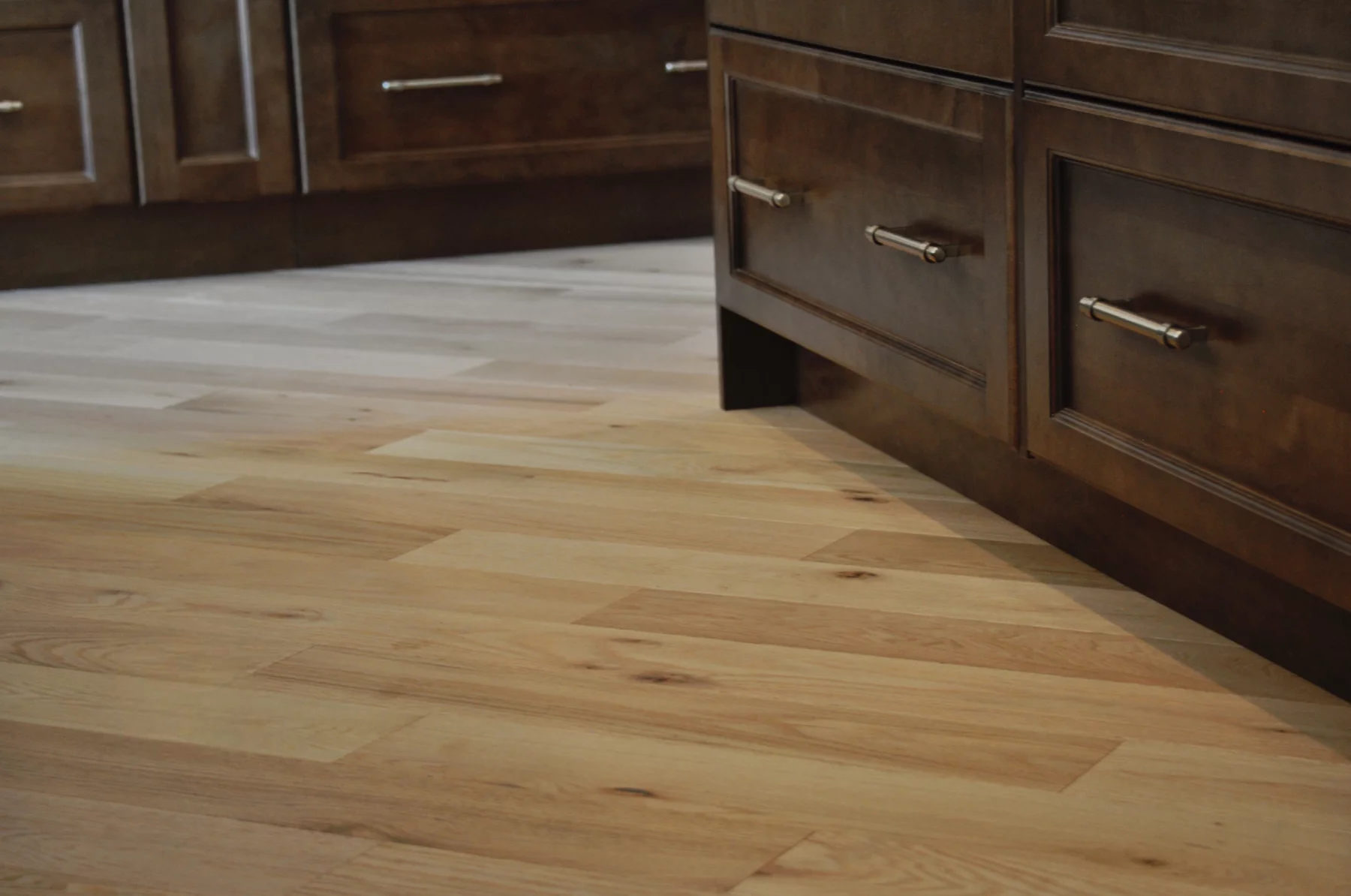 Les nuances naturelles du Chêne rouge s’harmonisent parfaitement aux armoires en bois, aux accents de pierre et aux lignes épurées, créant une continuité élégante entre les pièces. En guidant le regard à travers les espaces ouverts, la pose diagonale accentue l’esthétique lumineuse et contemporaine de la résidence.