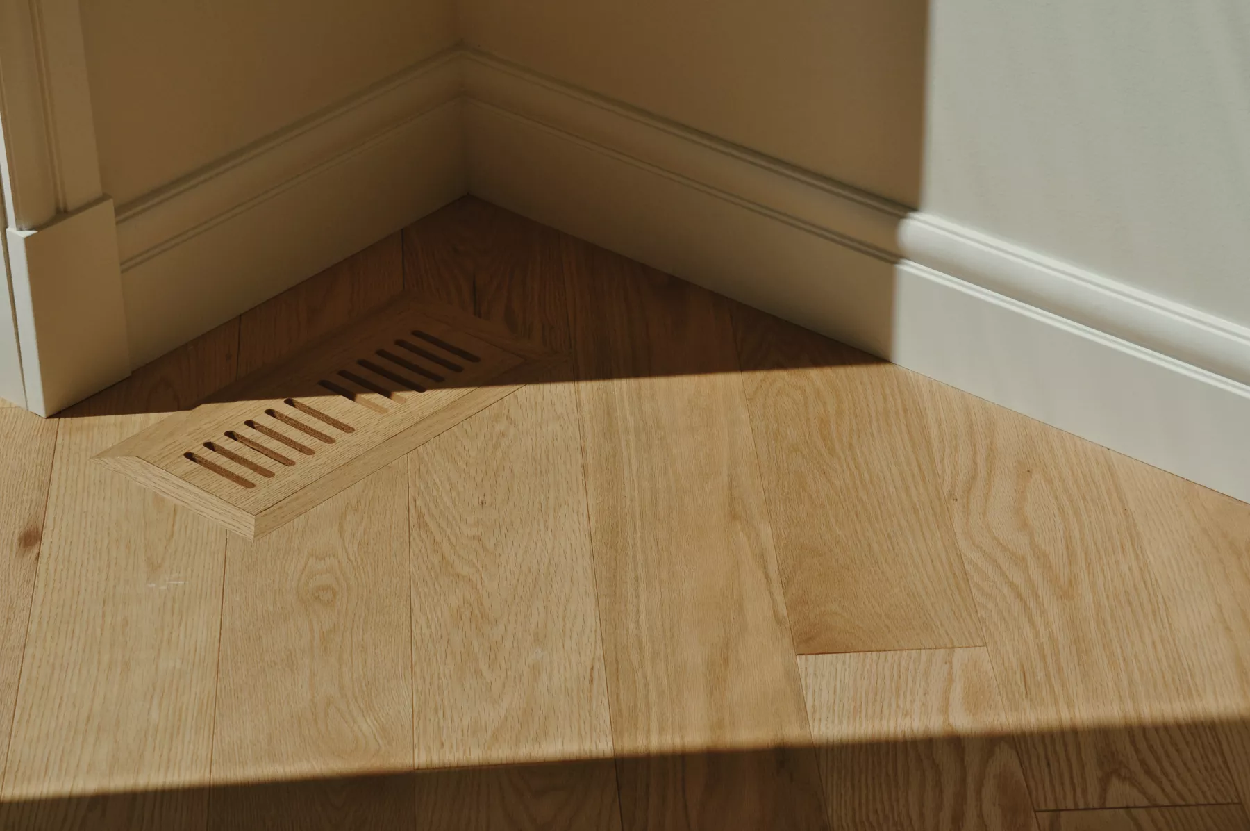 Plancher de bois franc Chêne rouge Laguna en pose diagonale dans une maison moderne
