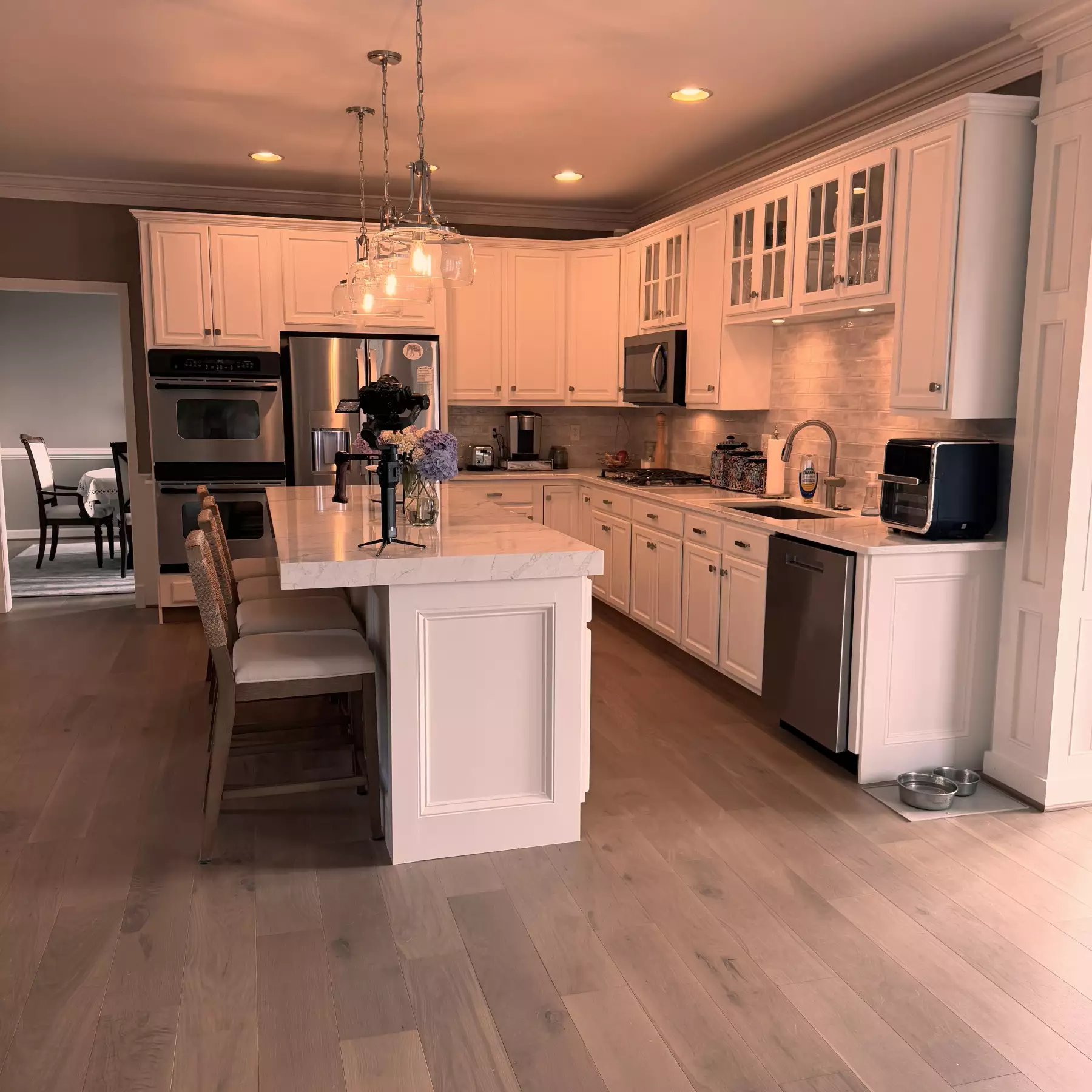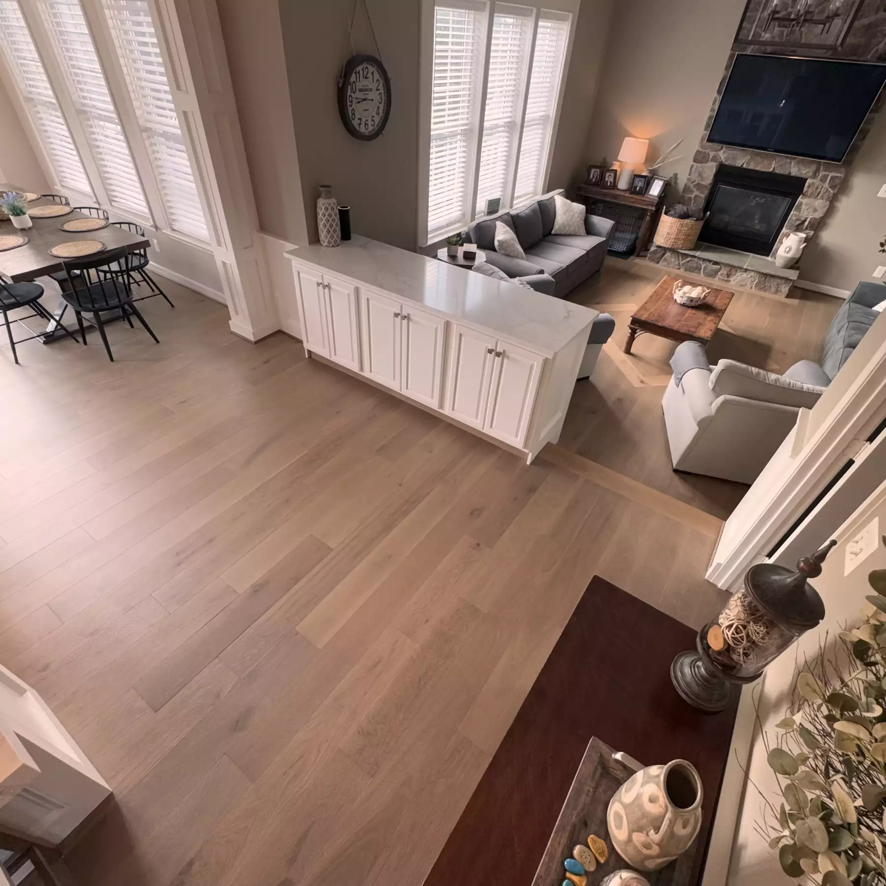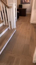 Pour cette superbe transformation résidentielle à Taneytown, Maryland, le détaillant Top Step Development a réalisé une installation impeccable de 1 800 pieds carrés de plancher en Chêne blanc Hattie Caractère Brossé. Les tons brun moyen insufflent chaleur et confort à l’espace, tandis que les planches d’ingénierie de 7 pouces de large assurent une durabilité remarquable. La texture de surface brossée facilite l’entretien ‒ un choix idéal pour une maison moderne.