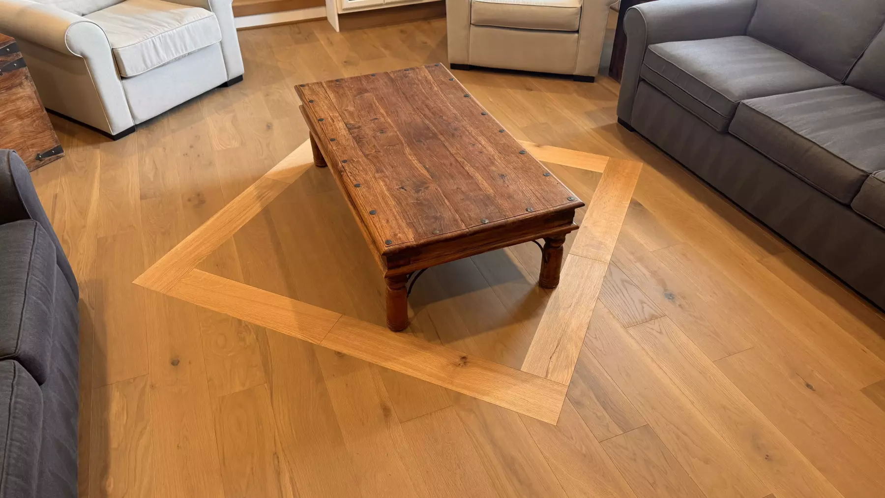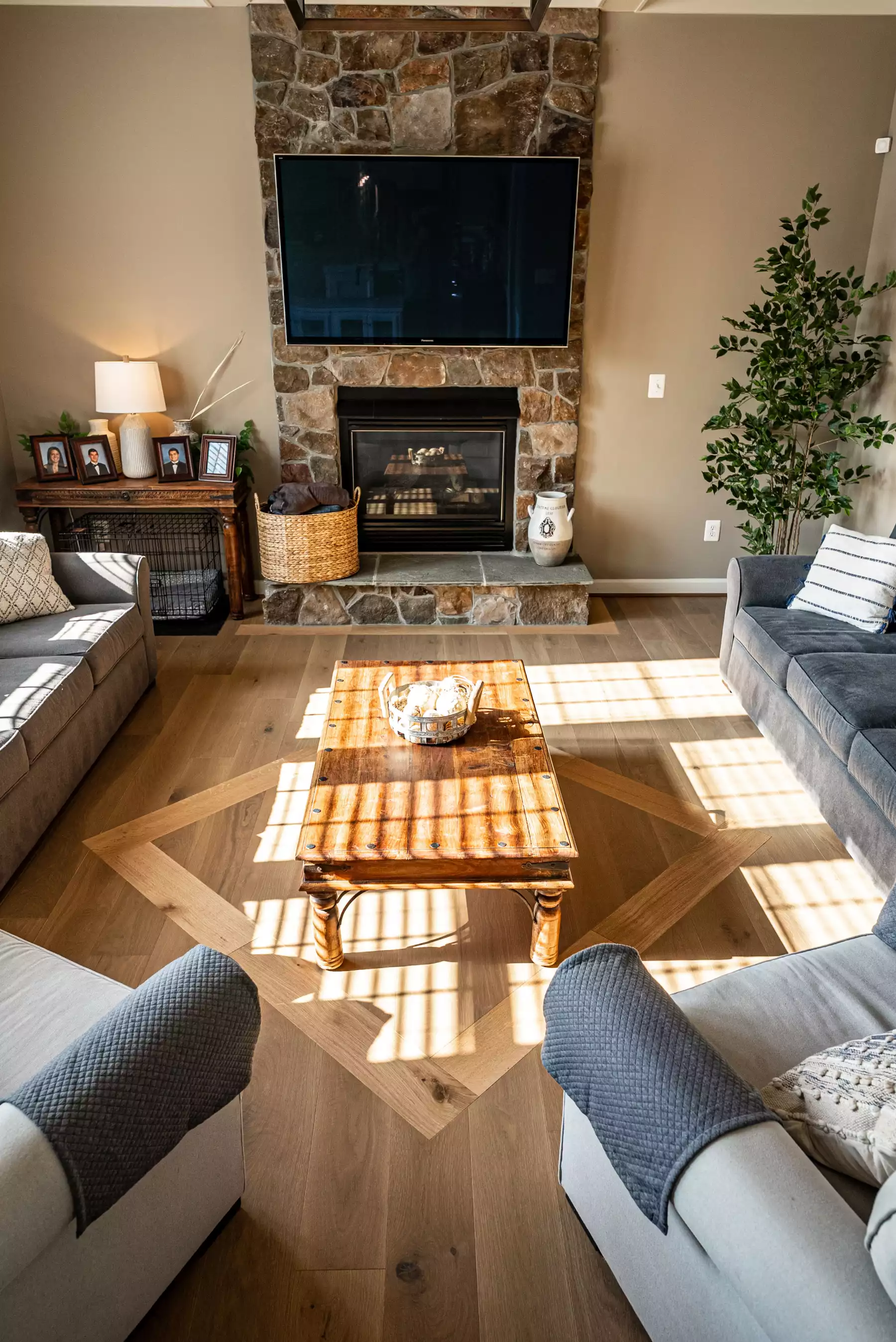 En touche finale, une insertion sur mesure de Chêne blanc Naturel a été ajoutée dans le salon, encadrant avec élégance le cœur de la maison, un lieu de rassemblement pour la famille et les amis. Ce choix de plancher raffiné témoigne d’un engagement envers la qualité, le design intemporel et la fonctionnalité au quotidien.